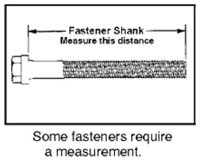 2. Some of the fasteners described require a measurement as a check prior to reuse. Always measure the shank of the bolt, not including the head.