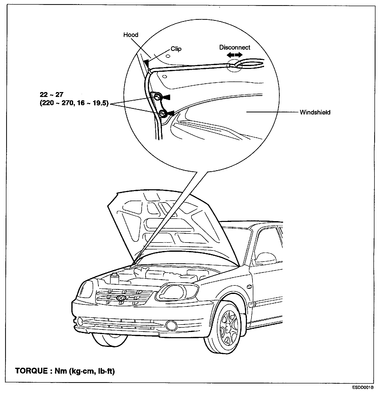1. Disconnect the windshield washer nozzle connecting tube and clip.