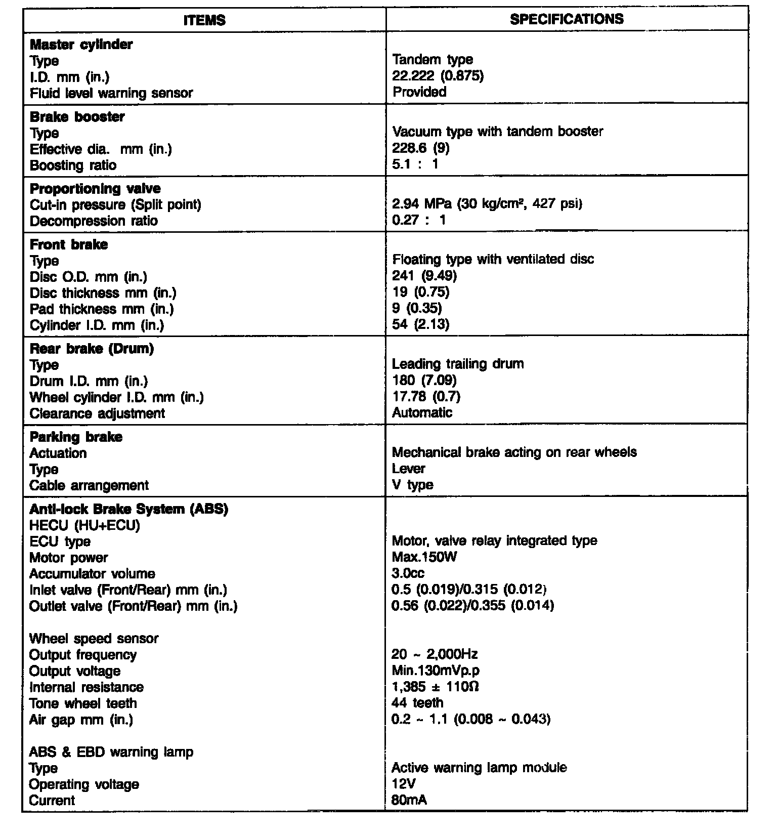 Brakes and Traction Control: Specifications
