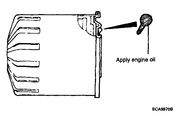 2. Before installing a new oil filter on the engine, apply clean engine oil to the surface of the rubber gasket.