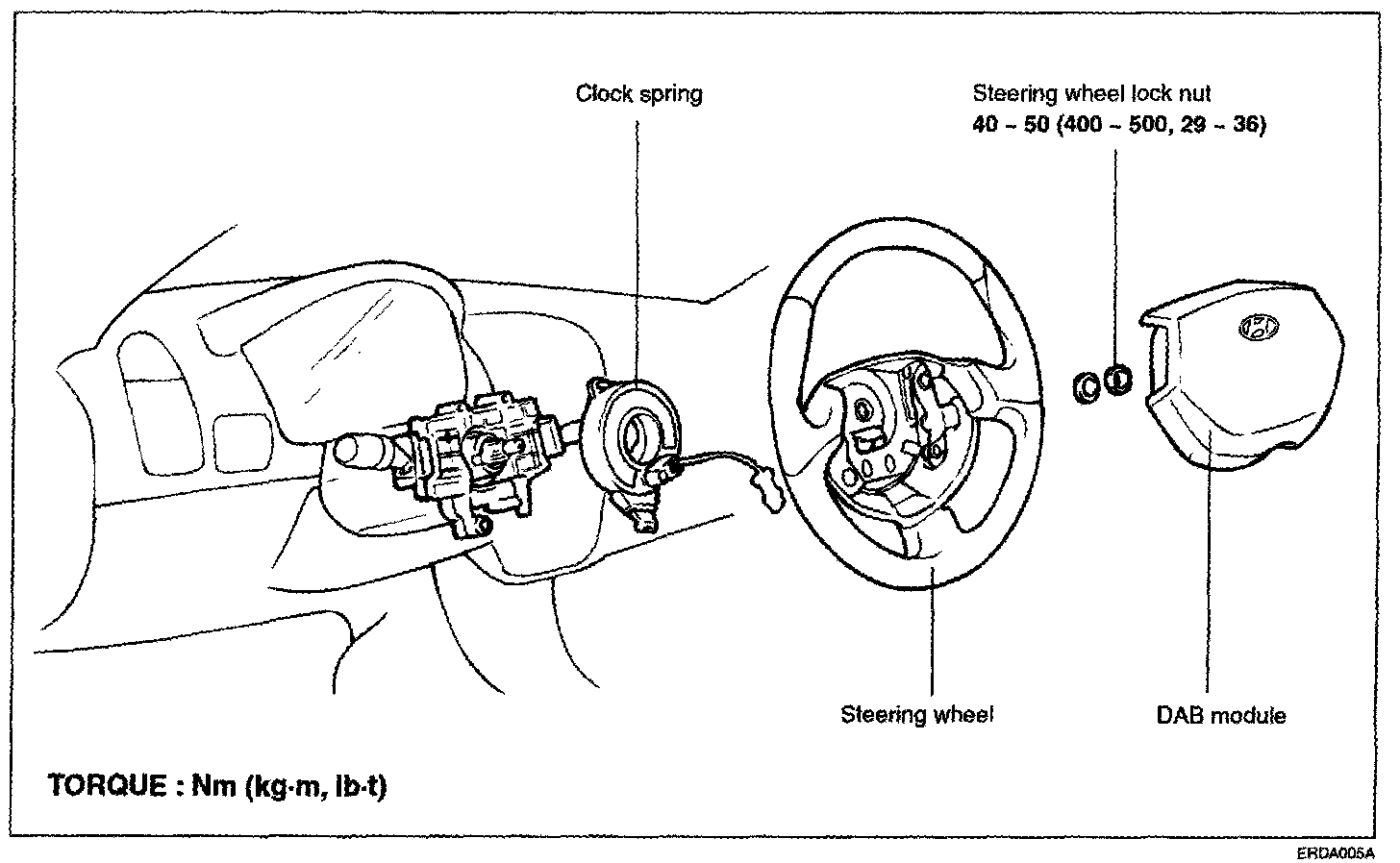 2. Malfunction symptoms of the airbag system are difficult to confirm, so diagnostic codes become the most important source of information when troubleshooting. When troubleshooting the airbag system, always read the diagnostic codes before disconnecting the battery.