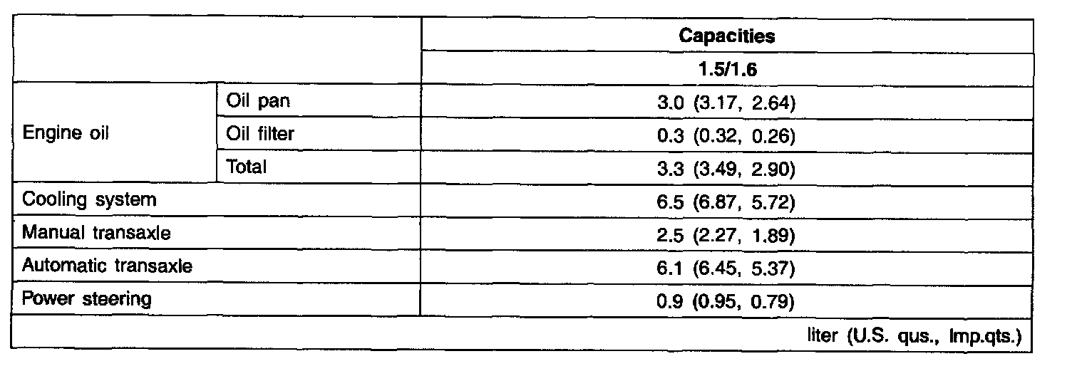 General Capacities Specifications
