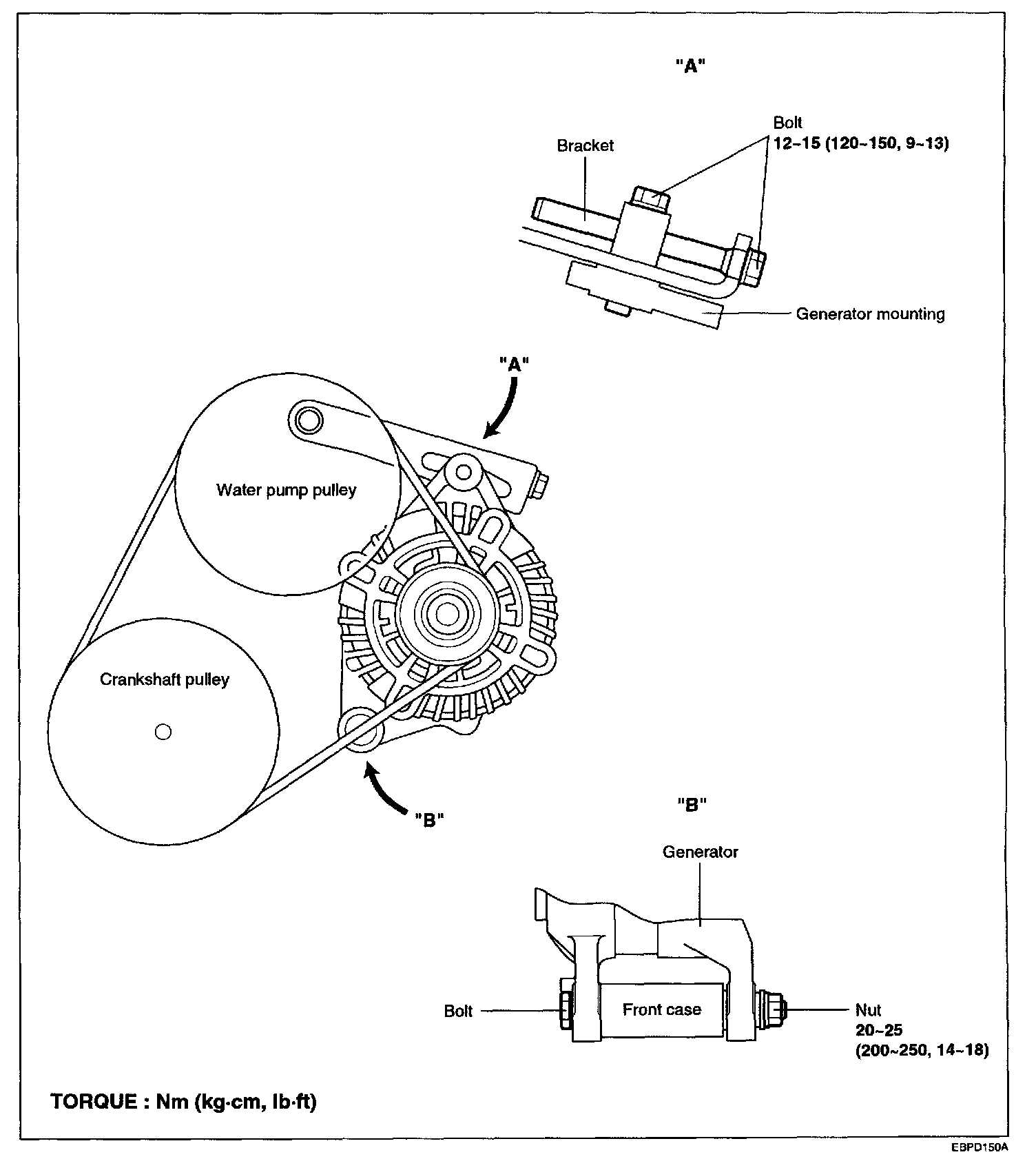 1. Position the generator and insert the support bolt. (Do not attach the nut)