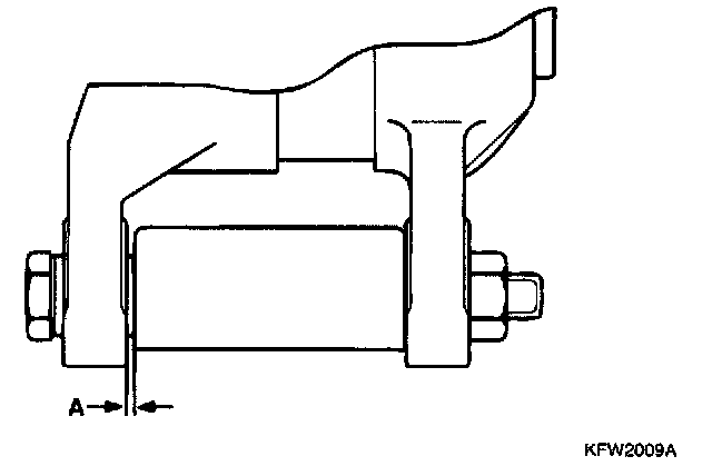 2. Push the generator forward and determine how many spacers (thickness: 0.198 mm) should be inserted between the front leg of the generator and the front case. (space "A" in the illustration) (There should be enough spacers so that they do not fall out when you let go of them.)