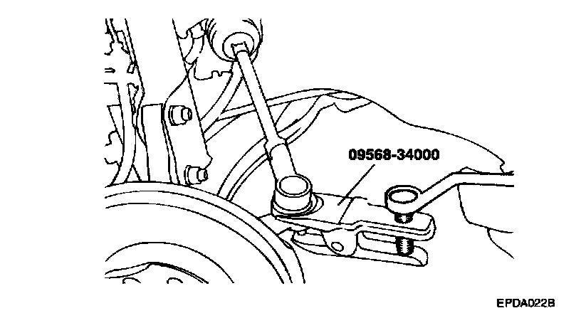 4. After removing the split pin, disconnect the tie rod from the knuckle using a special tool (09568-34000).