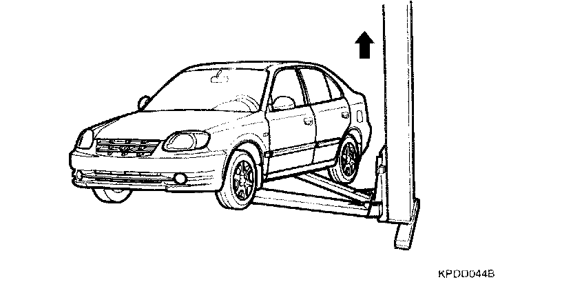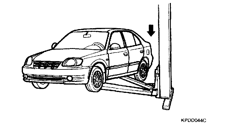 1. Support the specified point of the vehicle with a lift.