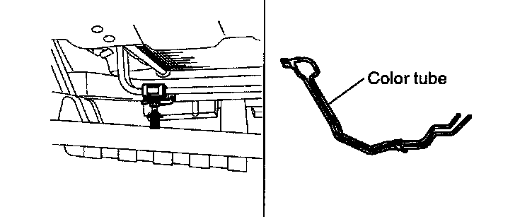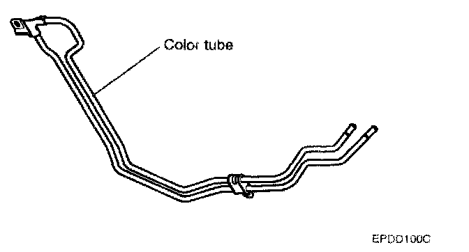 13. Disconnect the remove the color tube from the power steering oil reservoir tank side hose. (When working on the color tube)