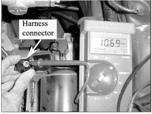 5. Using a DVOM, check the voltage between the vehicle harness connector and ground. If the voltage is:
