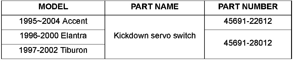 ^ Open or short circuit in the kickdown servo switch