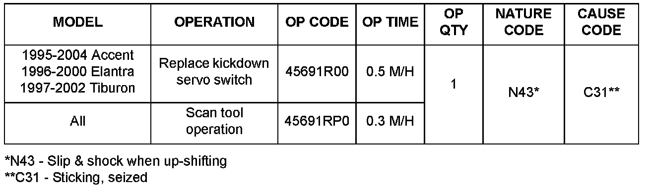 ^ Binding or seizing of the kickdown servo in the servo bore