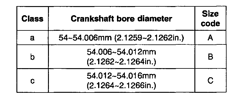 Crankshaft journal O.D: ..........50 mm (1.9685 inch)