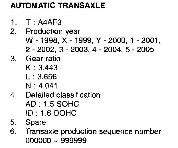 Description of Manual Transaxle Identification Number