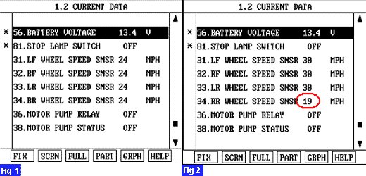 C1210 Wheel Speed Sensor Rear-RH Range/Performance/Intermittent - Monitor Scantool Data