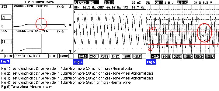 1) Check for improper installation of wheel speed sensor.(Misadjustment air gap) If NG, repair as necessary and then go to "Verification of Vehicle Repair" procedure.