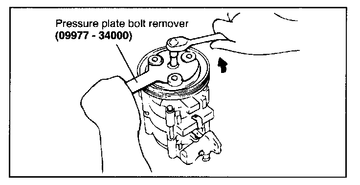 1. Remove the clutch hub supporting bolt using a spanner wrench.