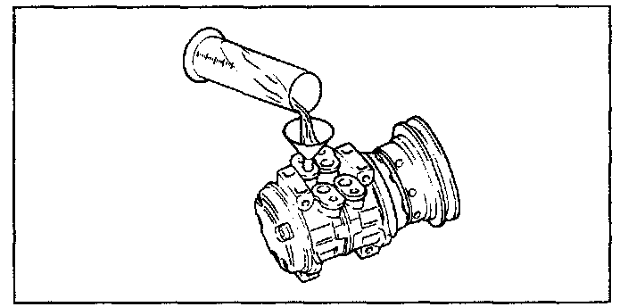 COMPRESSOR OILThe oil used to lubricate the compressor circulates in the system while the compressor is operating. Whenever replacing any component of the system or when a large amount of gas leakage occurs, add oil to maintain the original total amount of oil.