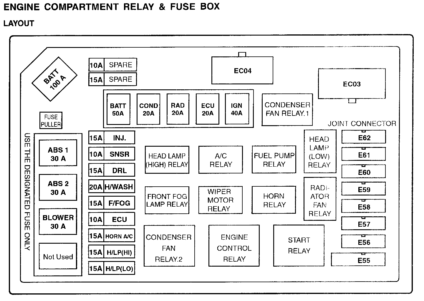 Engine Compartment Relay & Fuse Box Layout: