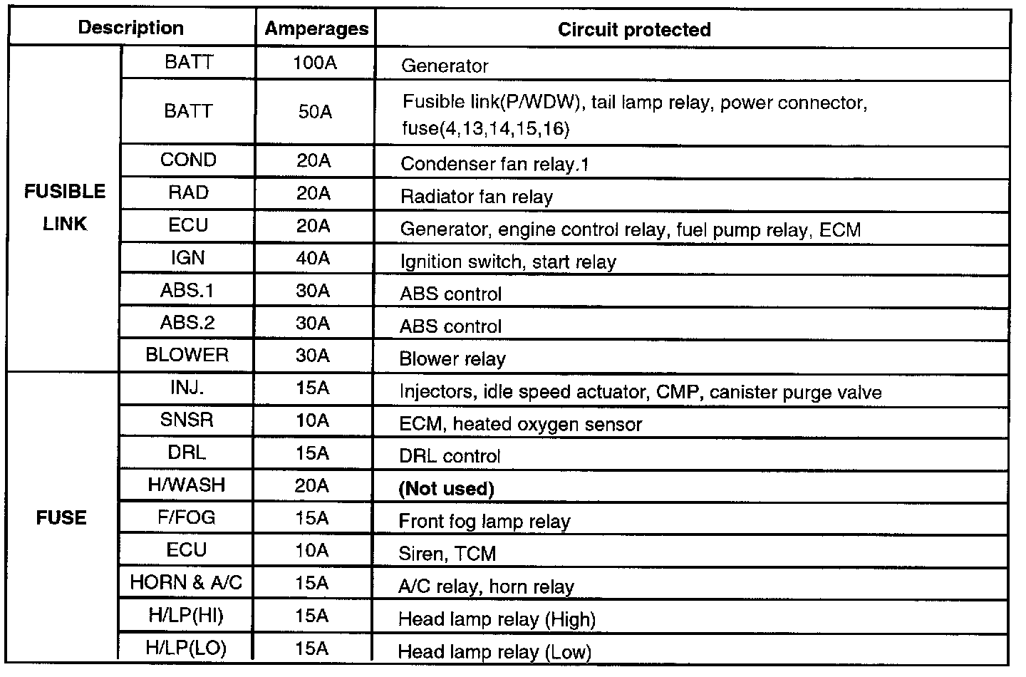 Engine Compartment Relay & Fuse Box Circuit Details:
