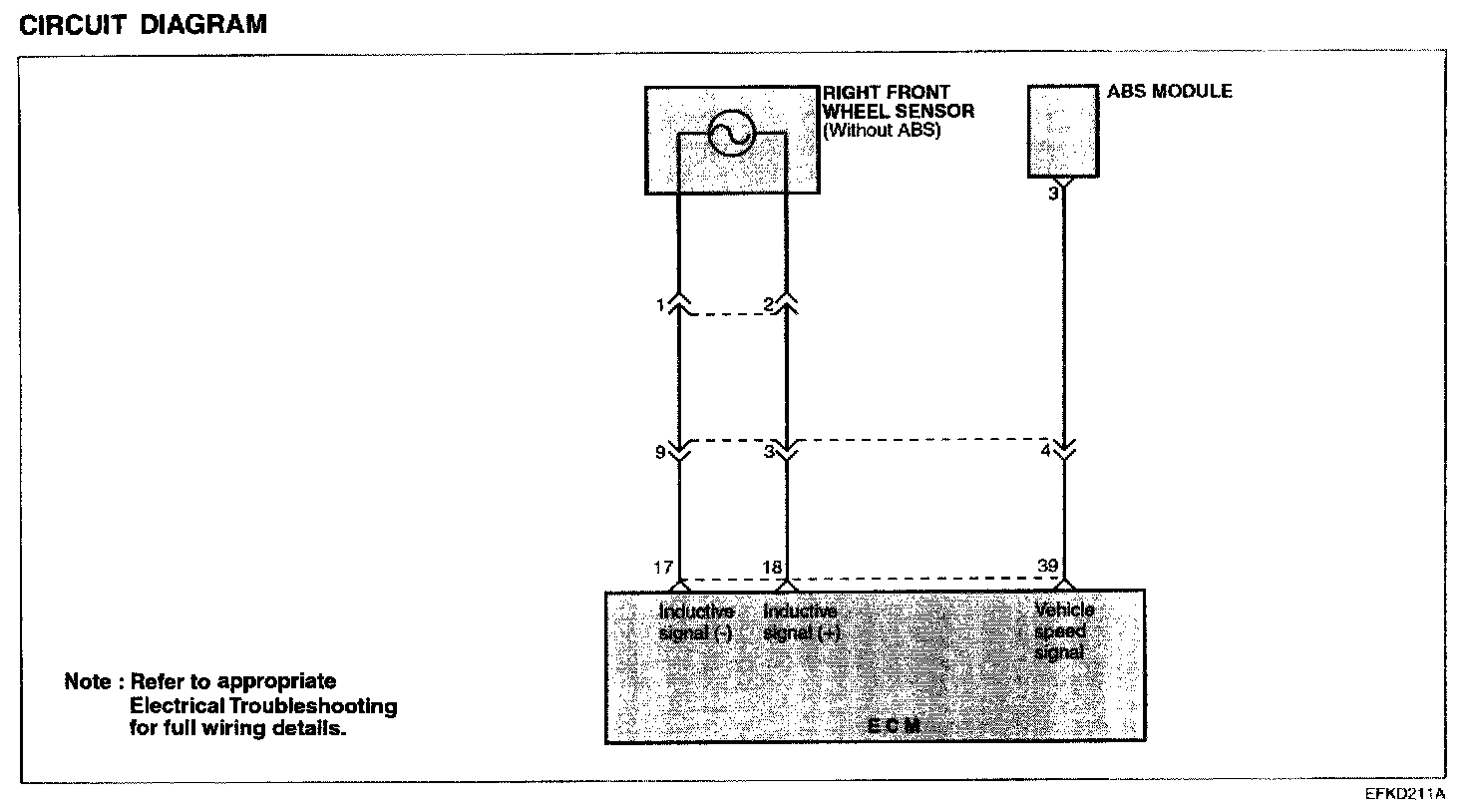 For a vehicle without ABS system, however, vehicle speed signal comes from the inductive wheel speed installed at the right front wheel.