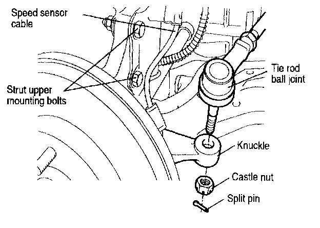 6. Tighten the tie rod end ball joint nut and insert the split pin.