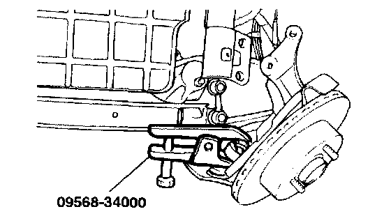5. Disconnect the lower arm ball joint from the knuckle by using the Special Tool (09568 - 34000).
