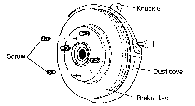 1. After removing the screws(2) mounting the brake disc, remove the brake disc from the hub.