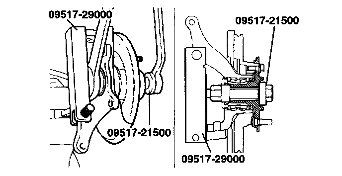 7. Tighten the hub and the knuckle to the specified torque by using the Special Tool (09517-21500).