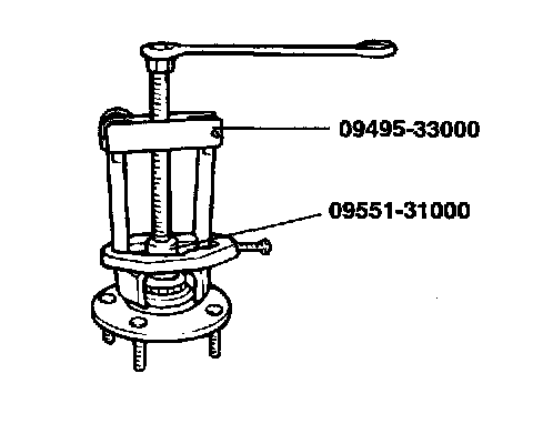6. Remove the bearing inner race from the hub by using the Special Tool (09495-33000, 09551-31000).