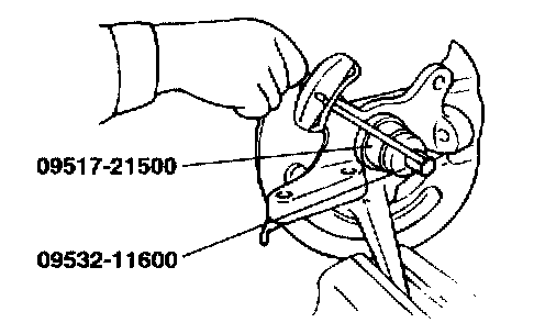 7. Using the Special Tool (09495 - 33100, 09517 - 29000), remove the wheel bearing outer race from the knuckle.
