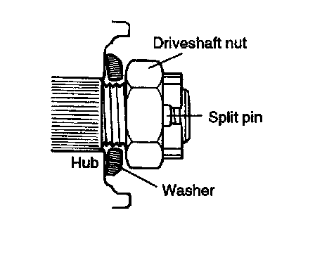 2. Remove the split pin, driveshaft nut and the washer from the front hub.