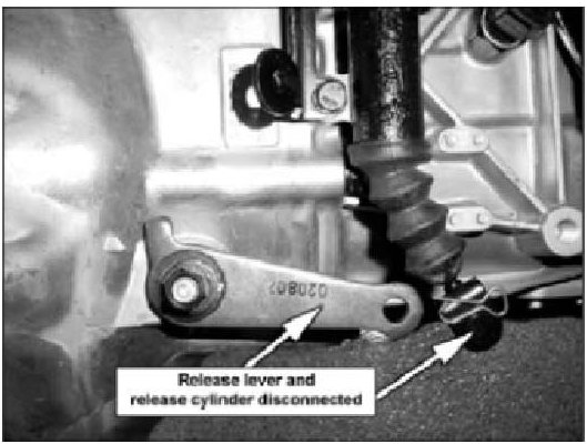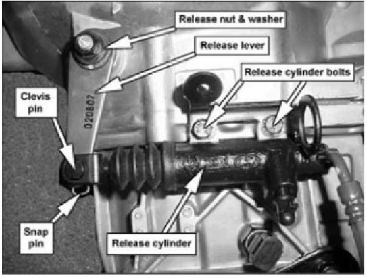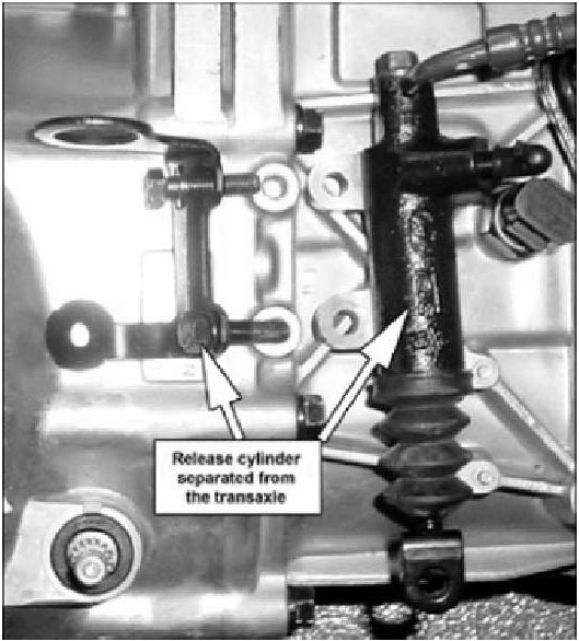 6. Loosen the bolts attached to the release cylinder and separate the release cylinder from the transaxle assembly (no need to open the clutch hydraulic system).