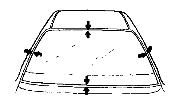 3. Center the new rear window glass in the opening. Mark the location by scribing lines across the glass and body with a grease pencil at the four points as shown.