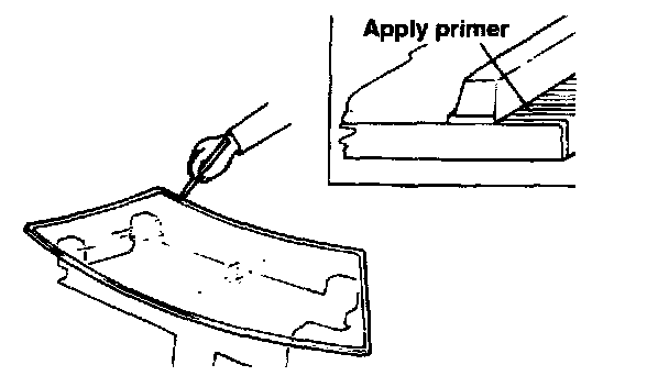 1. Never touch the primed surface with your hand. If you do, the adhesive may not bond to the glass properly, causing a leak after the rear window glass is installed.