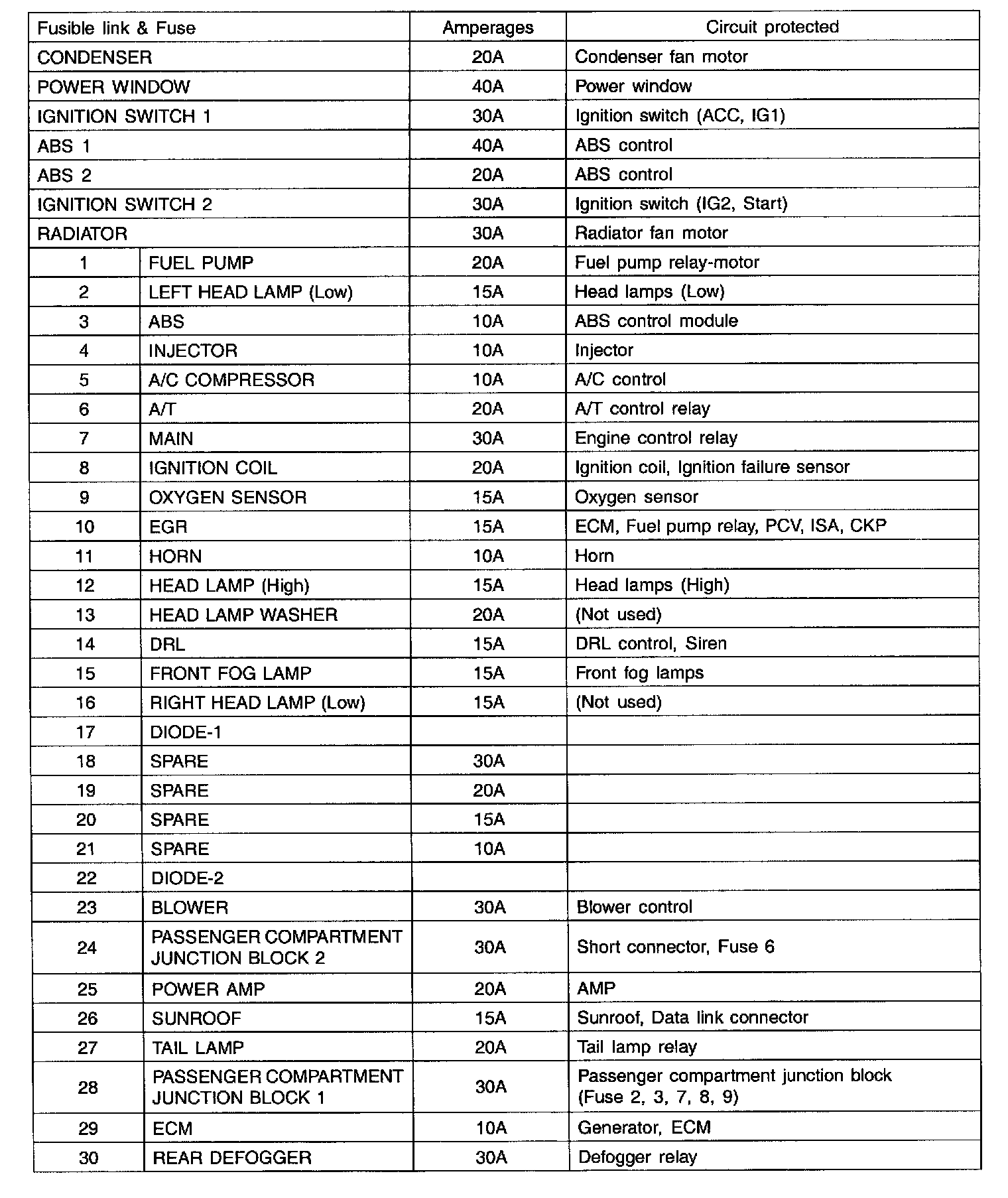 Engine Compartment Junction Block Circuit Details: