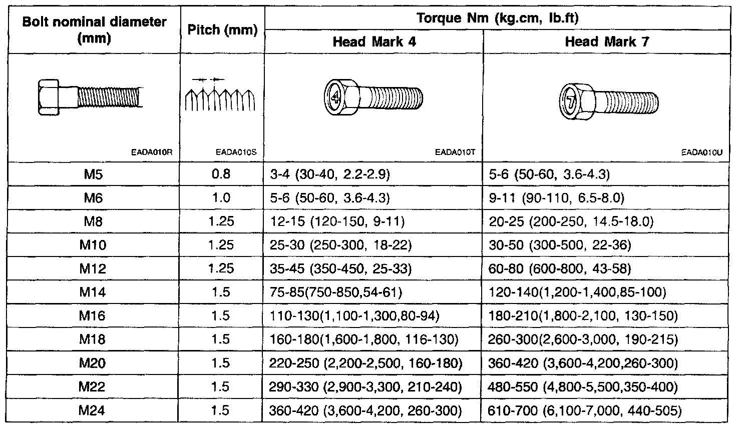3. If you reduce the torques in the table to the percentage indicated, under the conditions, if will be the standard value.