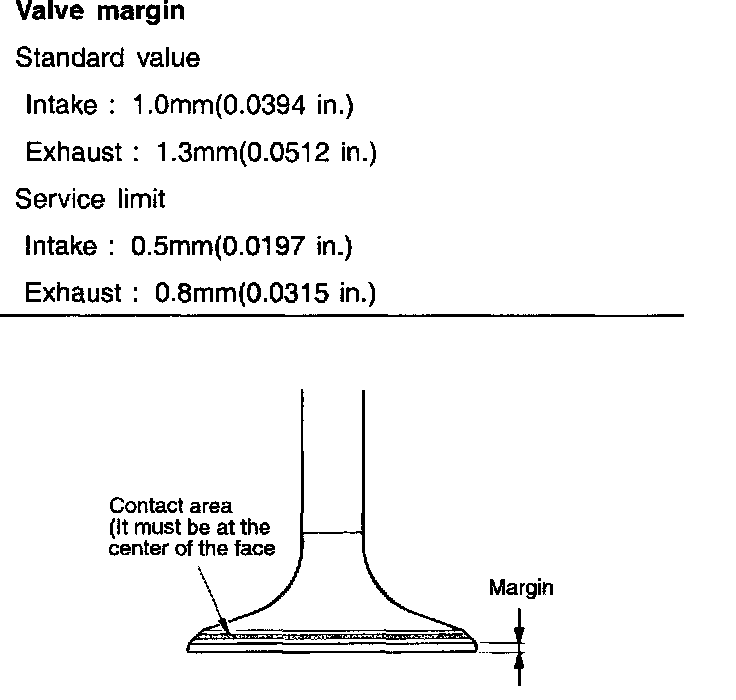 3. Replace the valve if the width of the margin (thickness of the valve head) is less than the minimum specified.