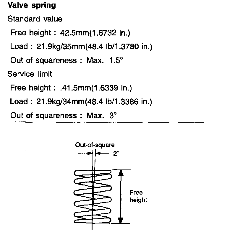 1. Check the free height of each valve spring and replace if necessary.