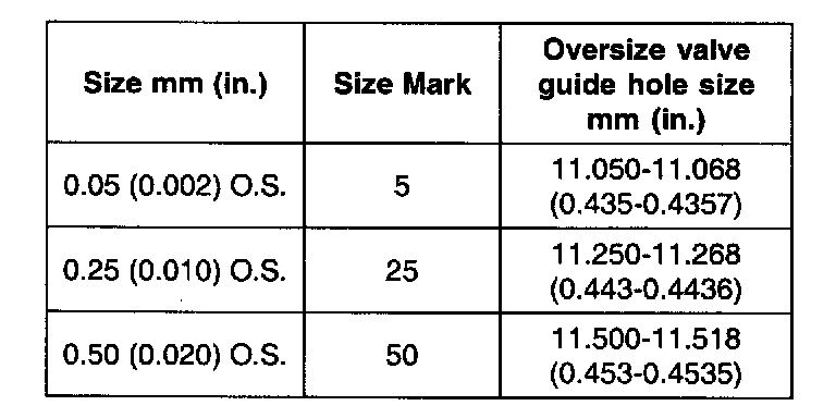 VALVE GUIDE OVERSIZES