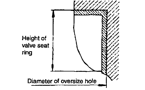 3. Heat the cylinder head to about 250°C (48°F) and press-fit an oversize seat ring for the bore in the cylinder head.