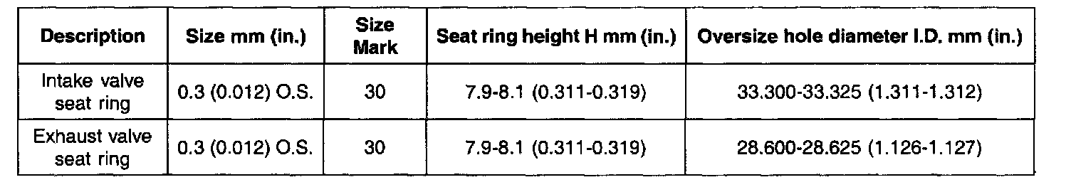 VALVE SEAT RING OVERSIZES