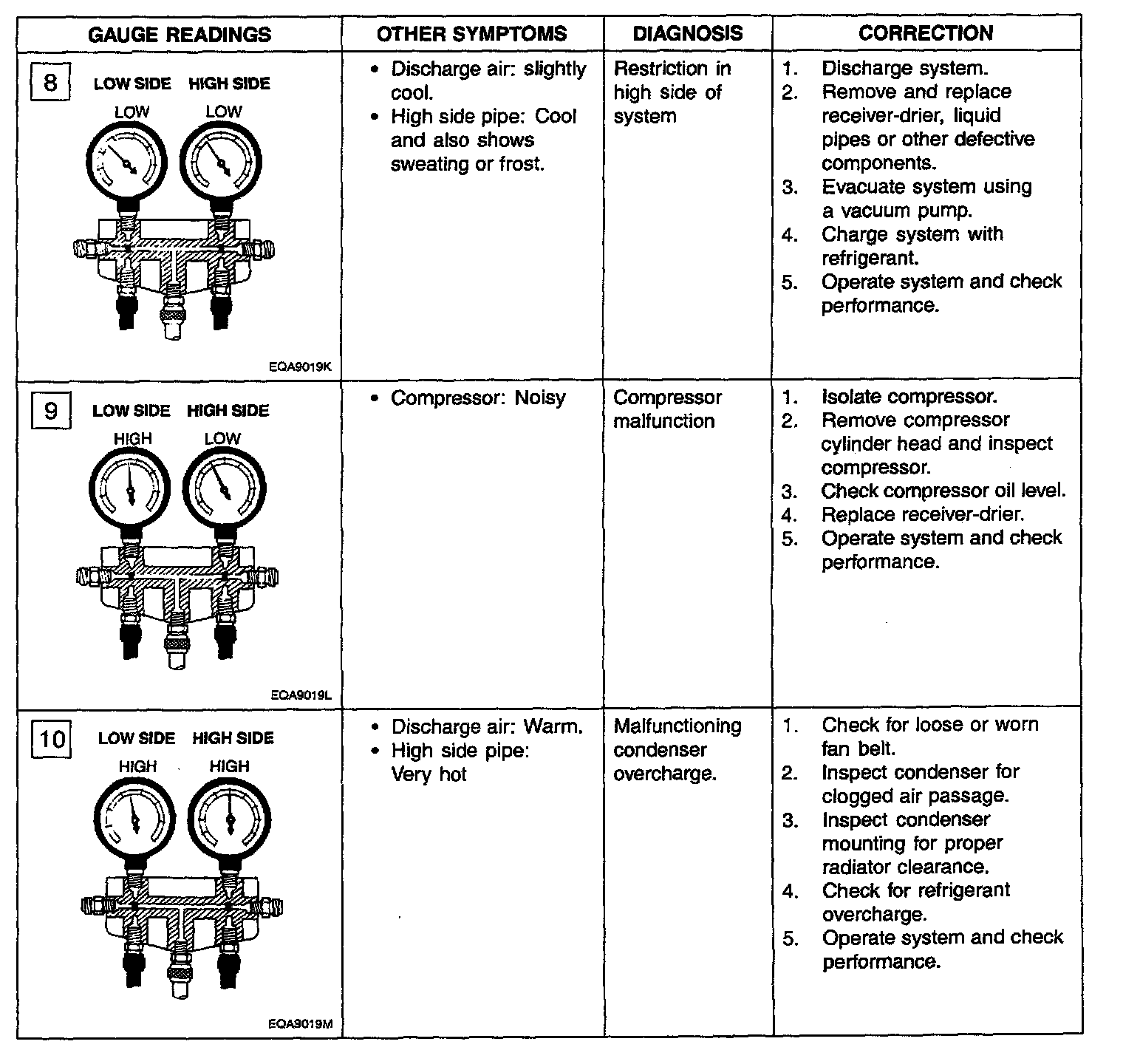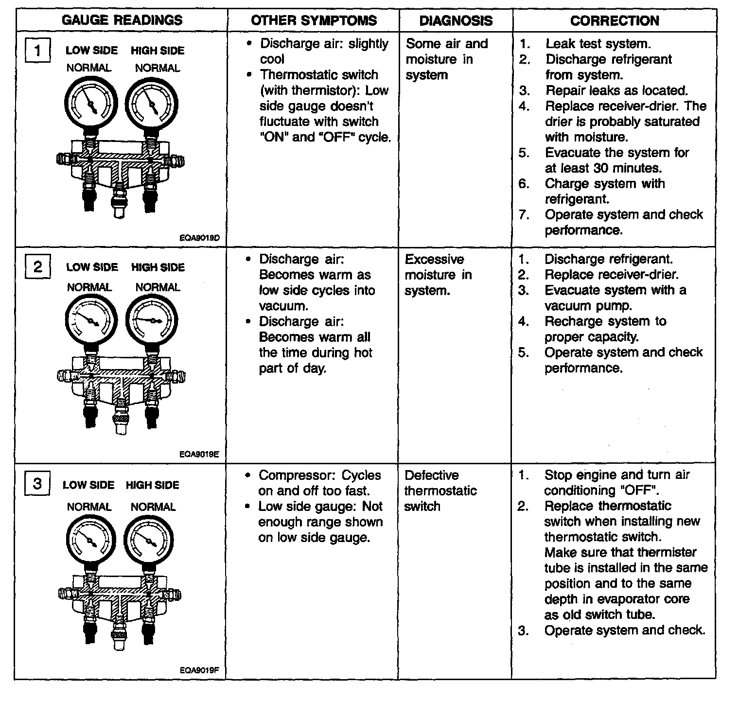 The test gauge indicators shown in the above chapter are to be used as typical examples of common problem, which you may need to diagnose.