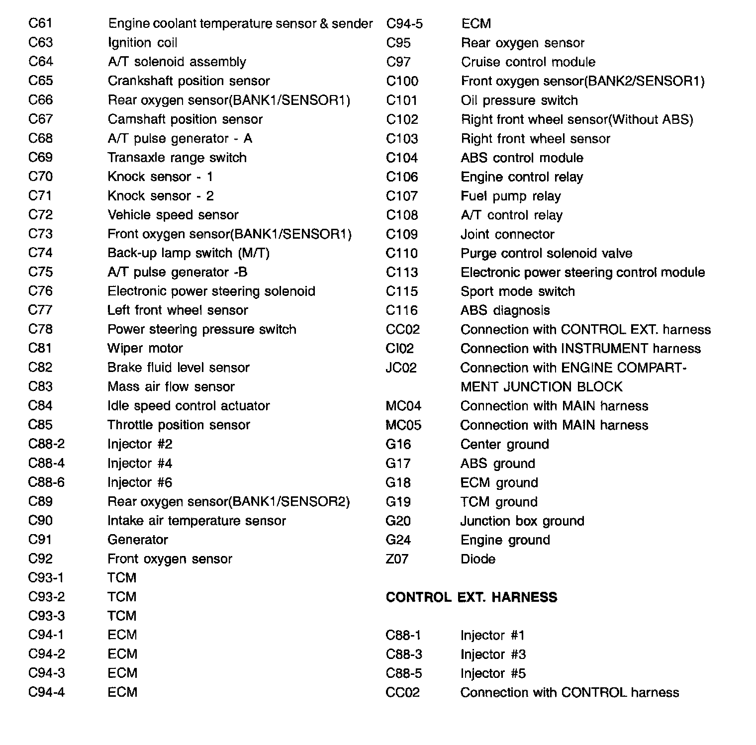 Control Harness Index: