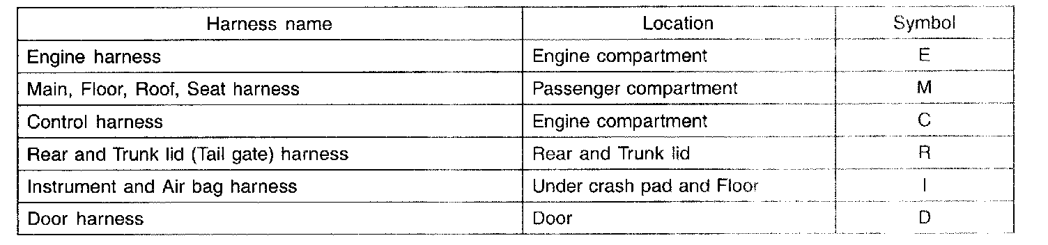 Electrical wiring connectors are classified according to the wiring parts in the Harness Layouts.