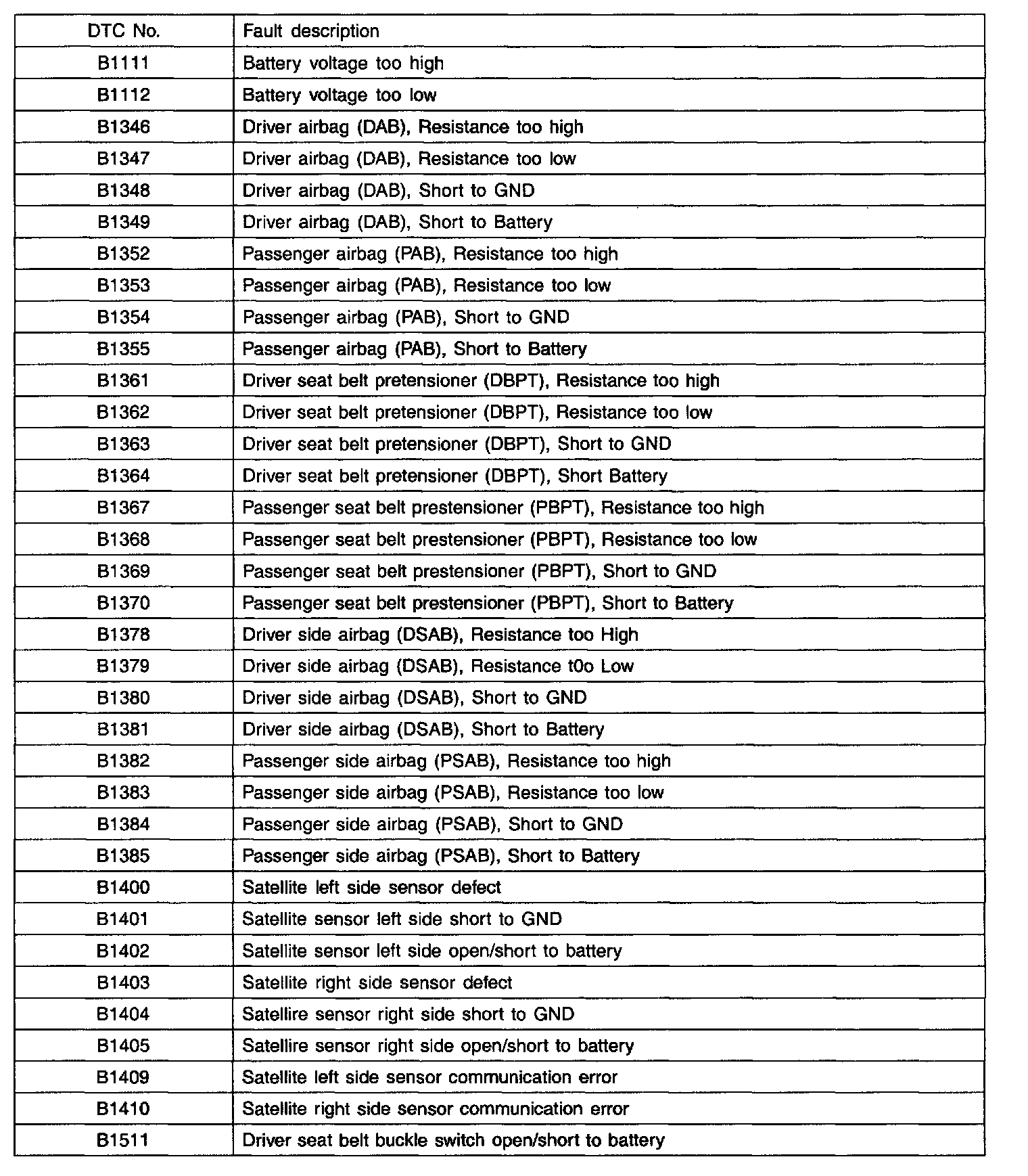 A L L Diagnostic Trouble Codes ( DTC )