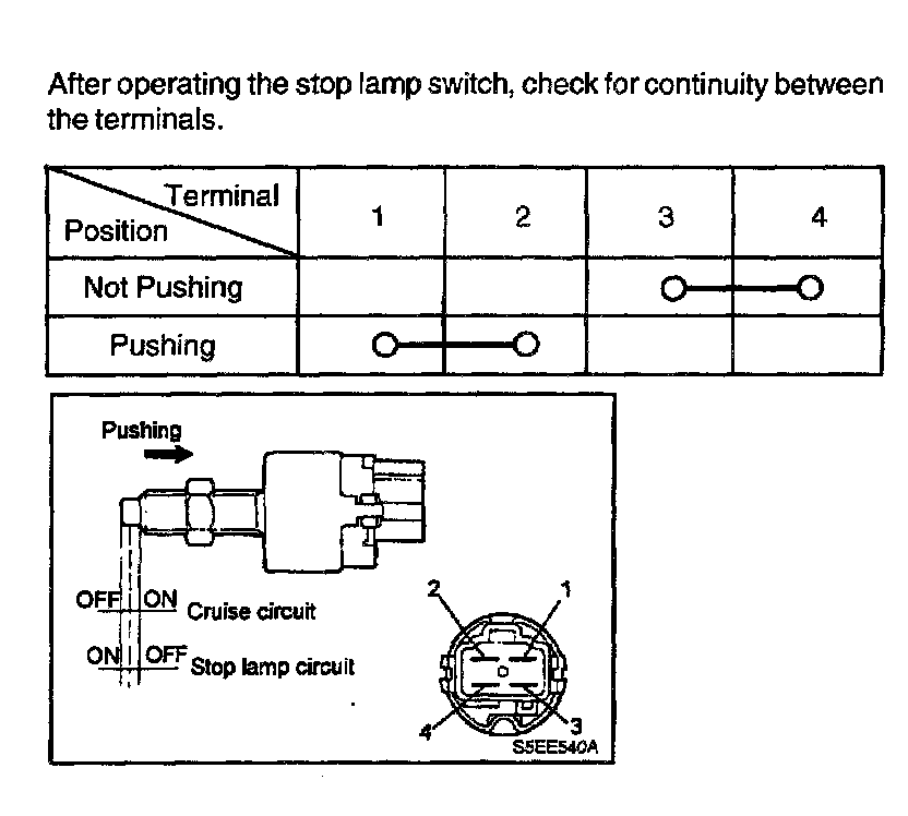 After operating the stop lamp switch, check for continuity between the terminals.