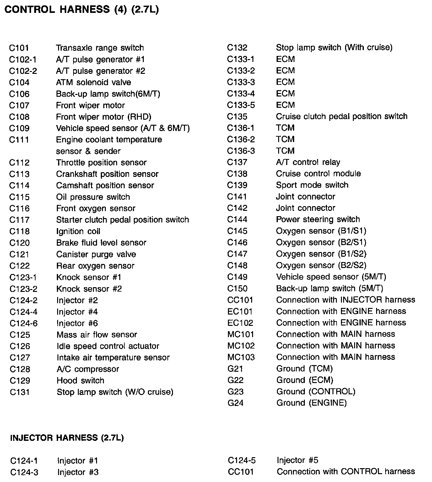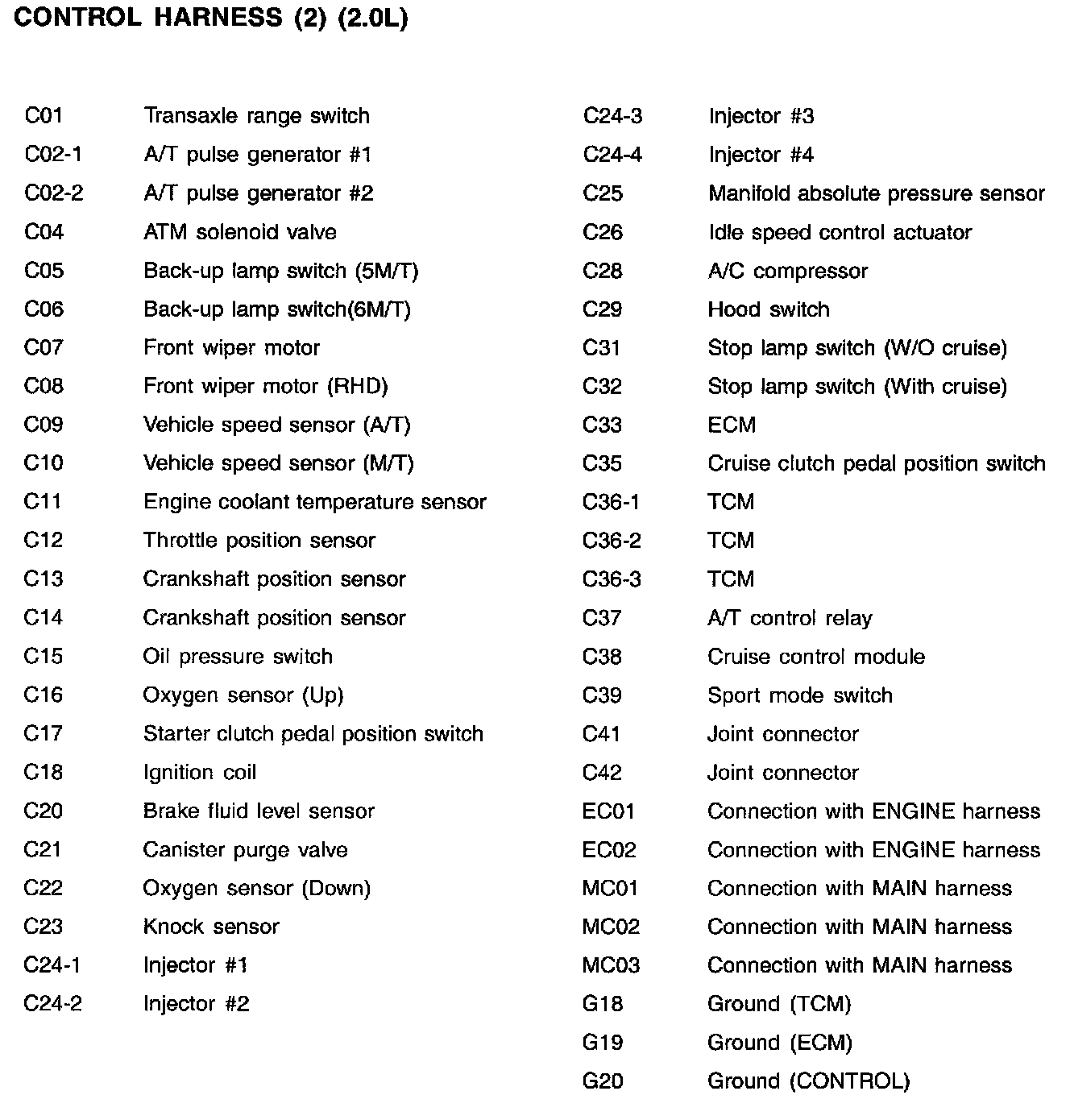 Control Harness Index: