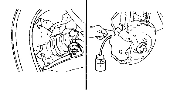 5. Pump the brake pedal several times, and then loosen the bleeder screw until fluid starts to run out without bubbles. Then close the bleeder screw.