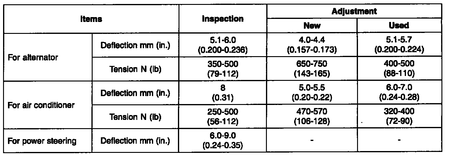 Alternator brace mounting bolt:............20 - 27 Nm (200 - 270 kg.cm, 15 - 20 ft. lbs.)
