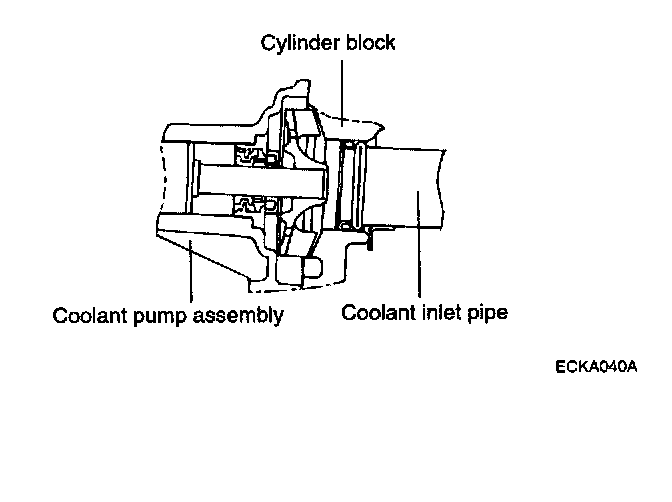 Fit an O-ring in the groove provided at the coolant inlet pipe end, wet the O-ring with coolant and insert the coolant inlet pipe.