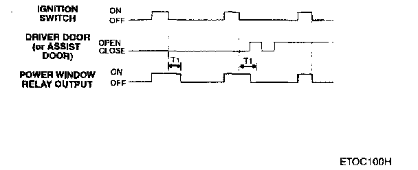 When Ignition 2 is turned off the power window feed is maintained on for 30 seconds and then turned off. If the driver door or assist door is opened during 30 Sec interval the output shall be turned off immediately. If doors are open and ignition 2 is then turned on, the output shall be turned on immediately. If doors are open and ignition 2 is then turned off, the output shall be turned off immediately.